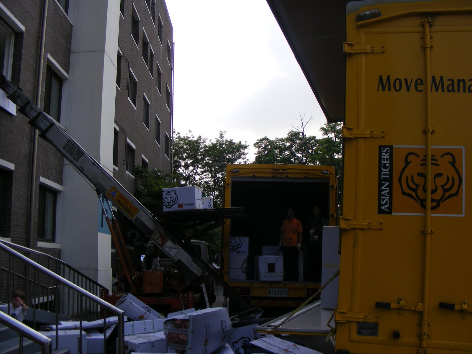 Then we take a number of days to get ready for them because each box is quite expensive. In shipping, you don’t pay for weight but size. So we had a HUGE moving sale, and gave and threw out loads and loads and LOADS of stuff. The tricky part here in Korea is that nearly everything that you throw out must be recycled. Like food (yucky food bucket!), paper, plastics, and metals. If it doesn’t fit one of those categories you have to PAY to throw it away because you have to use a certain expensive garbage bag. It’s a lot of work, but it really makes you not want to throw stuff away.