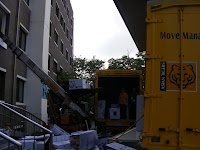 You can see in this picture that they use a lift to take boxes in or out of a house and load them into a truck. Pretty cool, huh?
